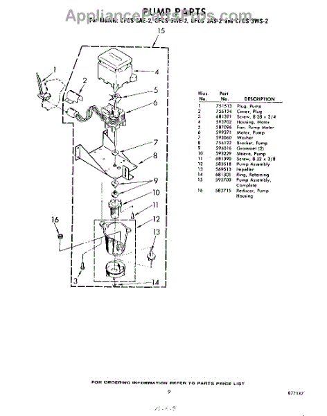 Parts for Whirlpool CFCS3AE2: 09 - Pump Parts
