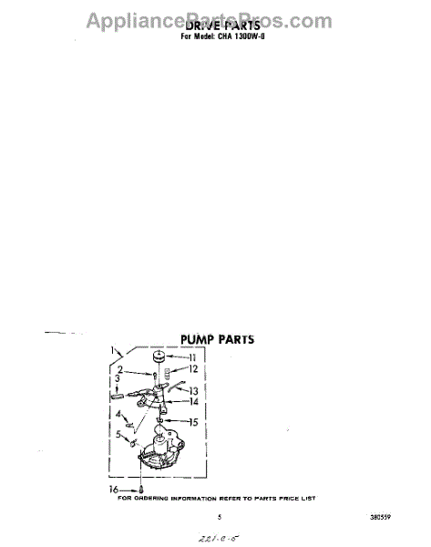 Parts for Whirlpool CHA1300W0: 05 - Pump Parts