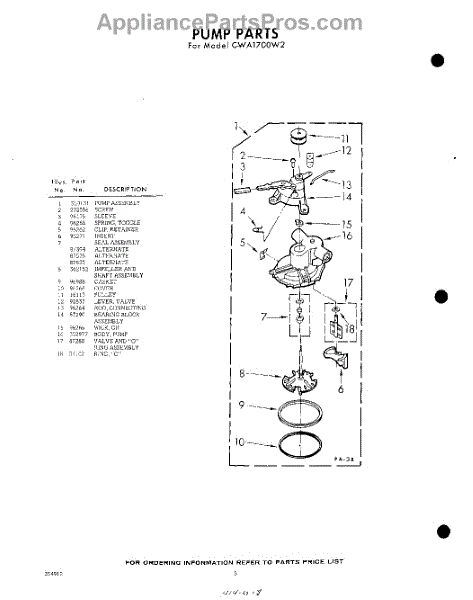 Parts for Whirlpool CWA1700W2: 08 - Pump Parts