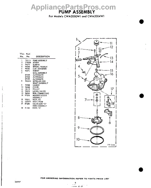 Parts for Whirlpool CWA2000W1: 08 - Pump Parts
