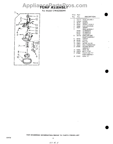 Parts for Whirlpool CWA2500W1: 08 - Pump Parts
