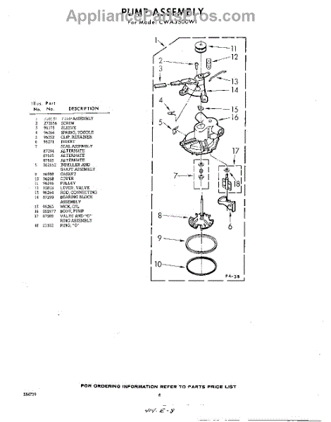 Parts for Whirlpool CWA3500W1: 08 - Pump Parts