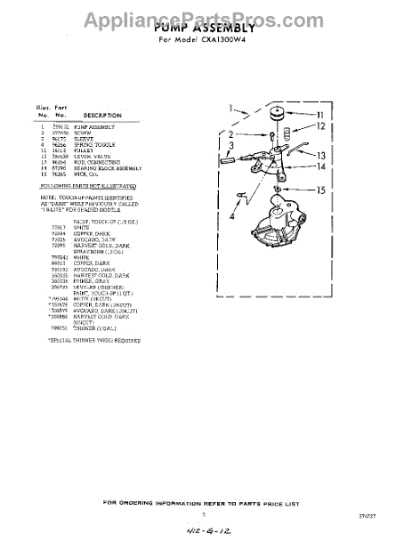Parts for Whirlpool CXA1300W4: 05 - Pump Parts