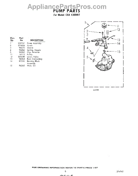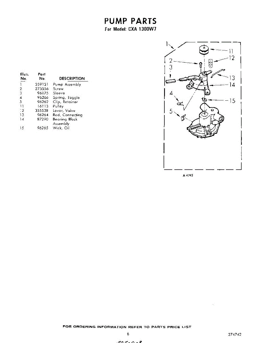 Parts for Whirlpool CXA1300W7: 08 - Pump Parts