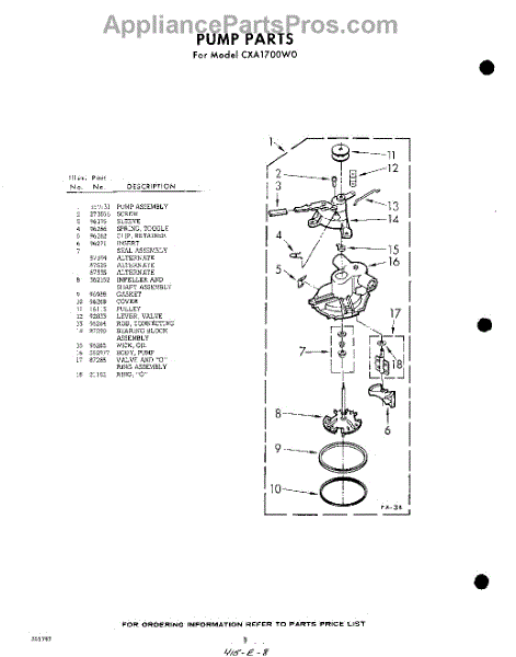 Parts for Whirlpool CXA1700W0: 08 - Pump Parts