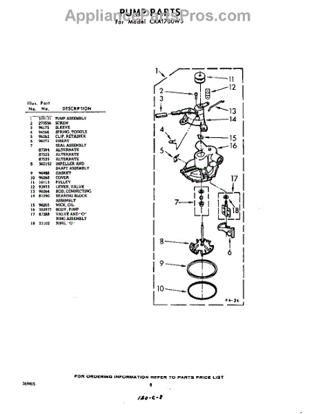 Parts for Whirlpool CXA1700W5: 08 - Pump Parts