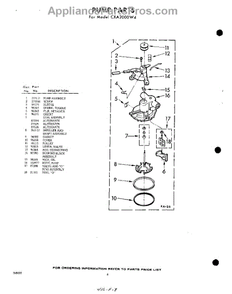 Parts for Whirlpool CXA2000W4: 08 - Pump Parts