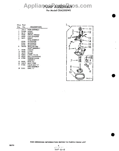 Parts for Whirlpool CXA2500W0: 08 - Pump Parts
