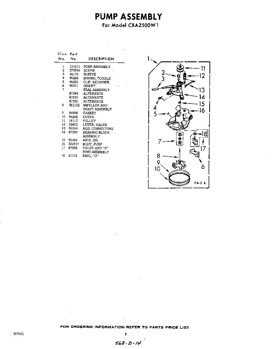 Parts for Whirlpool CXA2500W1: 08 - Pump Parts