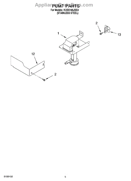 Parts for Kitchenaid KUSS185JSS3: 03 - Pump Parts