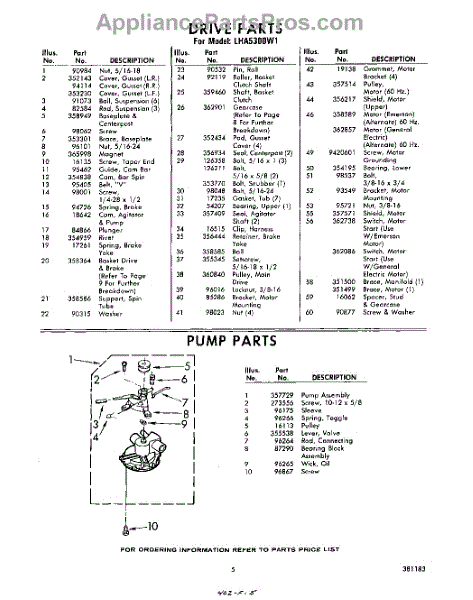 Parts for Whirlpool LHA5300W1: 05 - Pump Parts