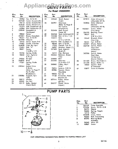 Parts for Whirlpool LHA5500W1: 05 - Pump Parts