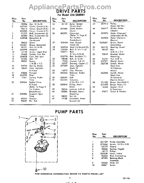 Parts for Whirlpool LHA5600W1: 05 - Pump Parts