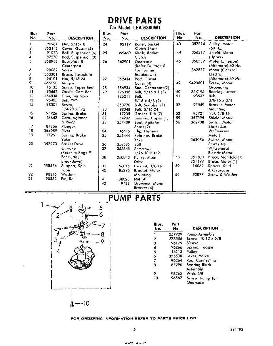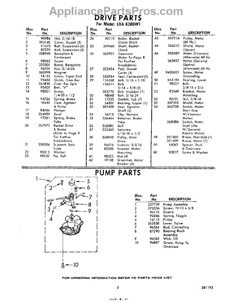 Parts for Whirlpool LHA6380W1: 05 - Pump Parts