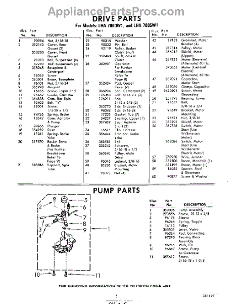 Parts for Whirlpool LHA7000W1: 05 - Pump Parts