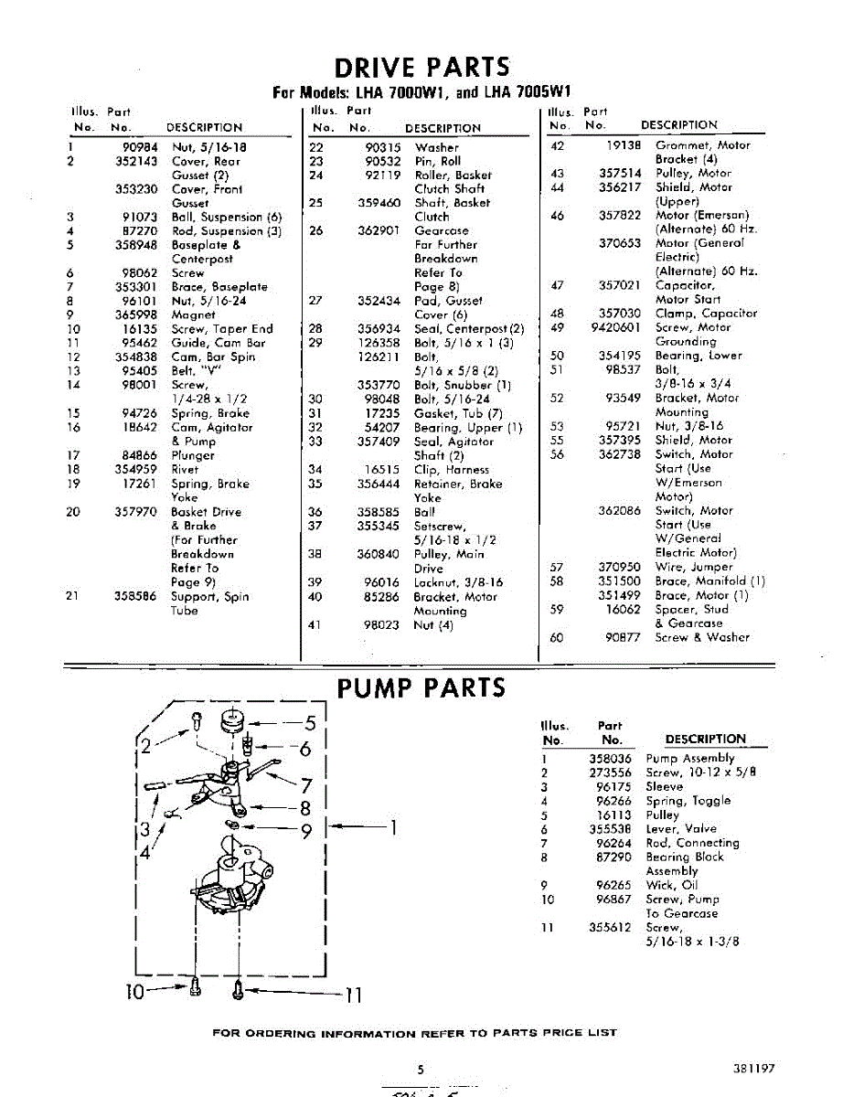 Parts for Whirlpool LHA7005W1: 05 - Pump Parts