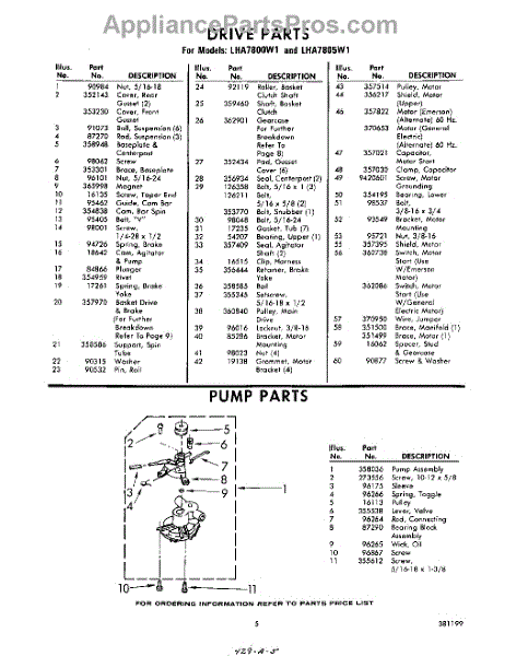 Parts for Whirlpool LHA7805W1: 05 - Pump Parts