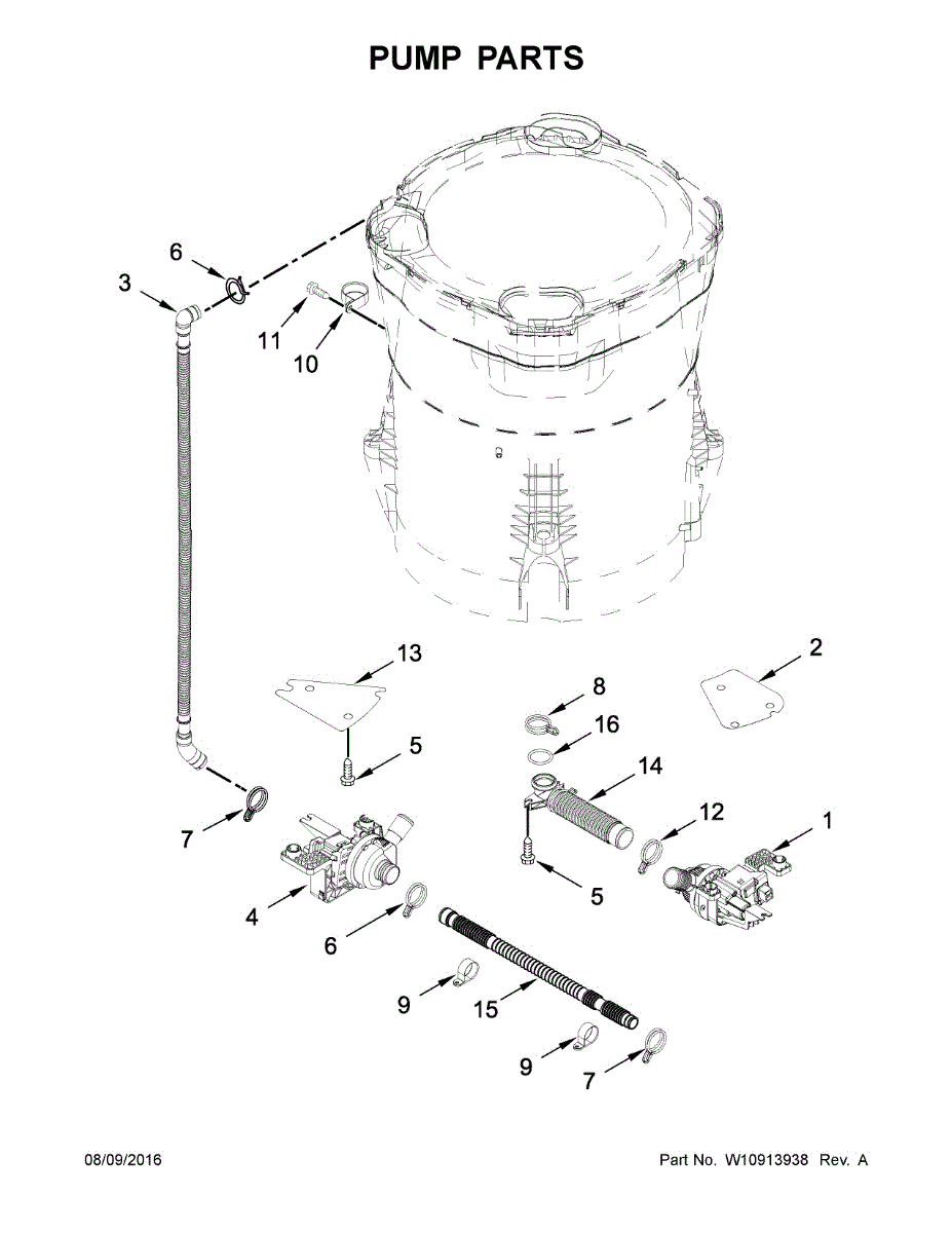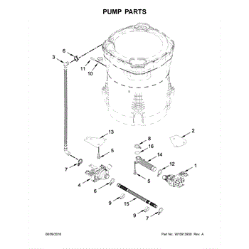 The Water Pump is an OEM part compatible with Whirlpool washing machines. It is responsible for circulating water during wash cycles, both picking up water from the tub and releasing it through the dispenser and hoses.