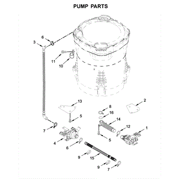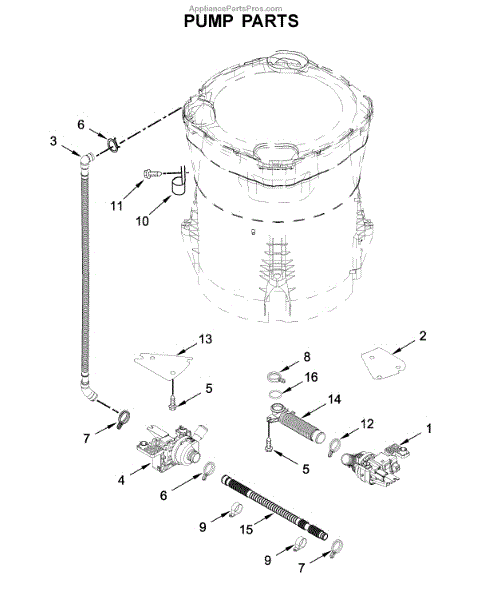 The Water Pump is an OEM part compatible with Whirlpool washing machines. It is responsible for circulating water during wash cycles, both picking up water from the tub and releasing it through the dispenser and hoses.