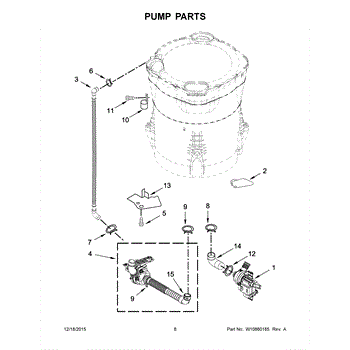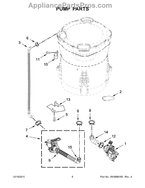 The Tub to Pump Hose is an OEM replacement part for Whirlpool washing machines. It serves as the connecting pipe linking the washing machine tub to the pump. Common causes of hose damage relate to extended use, exposure to harsh chemicals within machine drain water, and physical stress from years of frequent bending during operation. Symptoms of a failed tub-to-pump hose include: