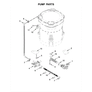 • Pumps water from the tub to the household drain during the drain cycle