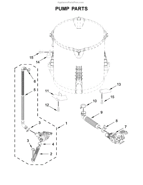 The Tub to Pump Hose is an OEM replacement part for Whirlpool washing machines. It serves as the connecting pipe linking the washing machine tub to the pump. Common causes of hose damage relate to extended use, exposure to harsh chemicals within machine drain water, and physical stress from years of frequent bending during operation. Symptoms of a failed tub-to-pump hose include: