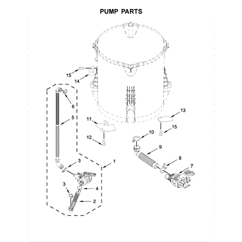 The Tub to Pump Hose is an OEM replacement part for Whirlpool washing machines. It serves as the connecting pipe linking the washing machine tub to the pump. Common causes of hose damage relate to extended use, exposure to harsh chemicals within machine drain water, and physical stress from years of frequent bending during operation. Symptoms of a failed tub-to-pump hose include: