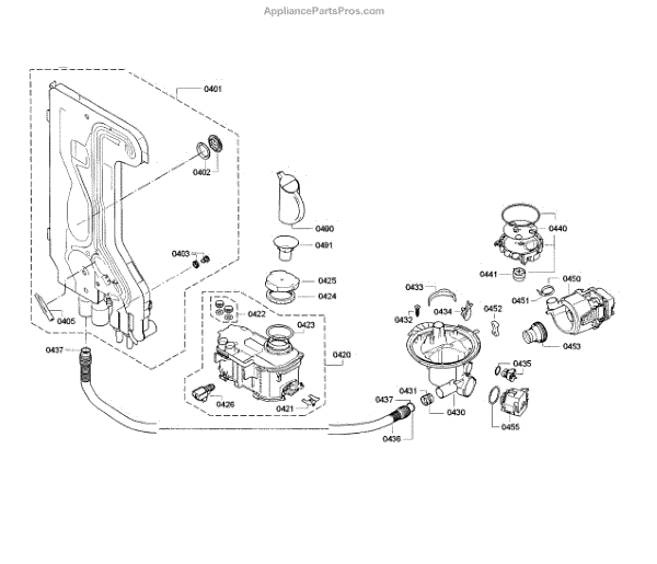 The Sump Assembly is an OEM part for Bosch dishwashers. It collects and channels water to the pump, ensuring proper circulation and drainage during the wash cycle.