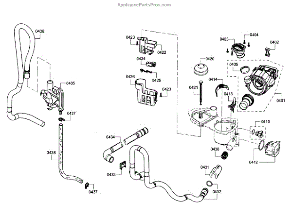 The Drain Hose is an OEM component for Bosch dishwashers. It is a flexible plastic tube responsible for removing used wash water from the dishwasher sump to household drain plumbing located outside the appliance. Causes of a bad drain hose include cracks developing along joints from constant bending during drainage or mineral buildup restricting water flow over time. Symptoms of a bad drain hose involve: