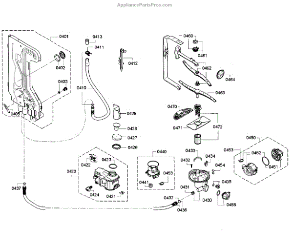 • Directs water between appliance components to ensure proper filling, draining or circulation