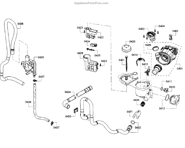The Drain Hose is an OEM component for Bosch dishwashers. It is a flexible plastic tube responsible for removing used wash water from the dishwasher sump to household drain plumbing located outside the appliance. Causes of a bad drain hose include cracks developing along joints from constant bending during drainage or mineral buildup restricting water flow over time. Symptoms of a bad drain hose involve: