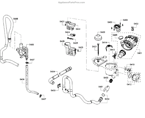 The Pump and Motor Assembly is an OEM part for Bosch dishwashers. This assembly includes both the circulation pump and motor, which work together to move water through the dishwasher during the cleaning cycle.