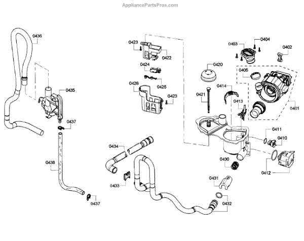 The Drain Hose is an OEM component for Bosch dishwashers. It is a flexible plastic tube responsible for removing used wash water from the dishwasher sump to household drain plumbing located outside the appliance. Causes of a bad drain hose include cracks developing along joints from constant bending during drainage or mineral buildup restricting water flow over time. Symptoms of a bad drain hose involve: