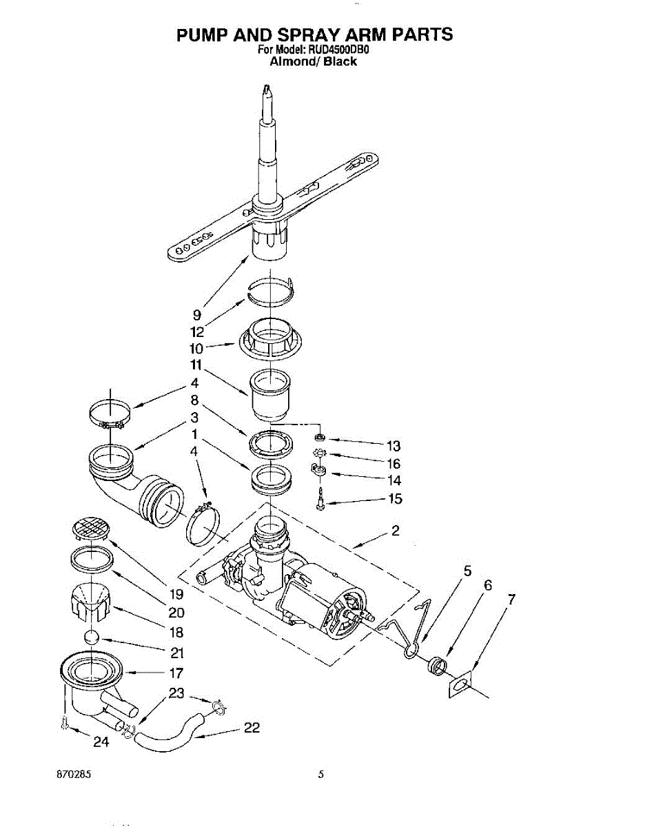 Parts for Roper RUD4500DB0: 04 - Pump And Spray Arm Parts