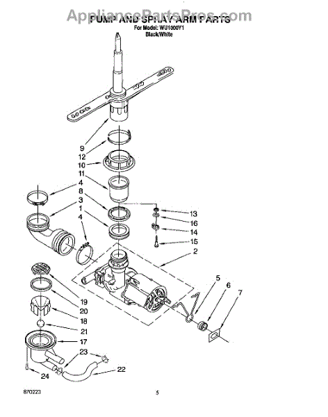 Parts for Roper WU1000Y1: 04 - Pump And Spray Arm Parts