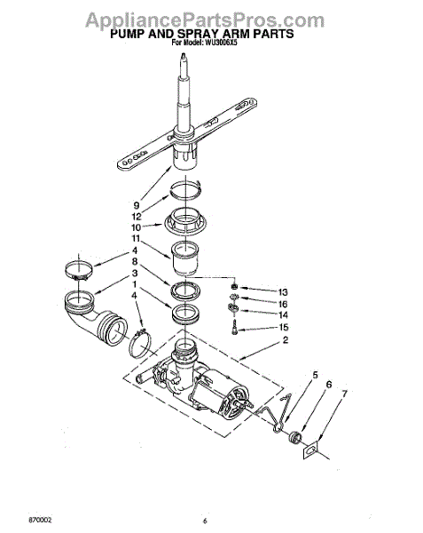 Parts for Roper WU3006X5: 05 - Pump And Spray Arm Parts