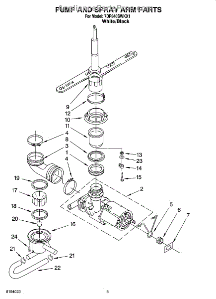 Parts for Whirlpool 7DP840SWKX1: 06 - Pump And Spray Arm Parts