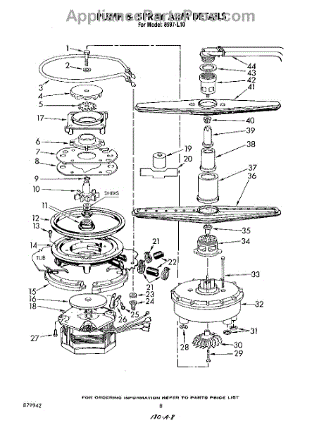 Parts for Whirlpool 8597L10: 08 - Pump And Spray Arm Parts
