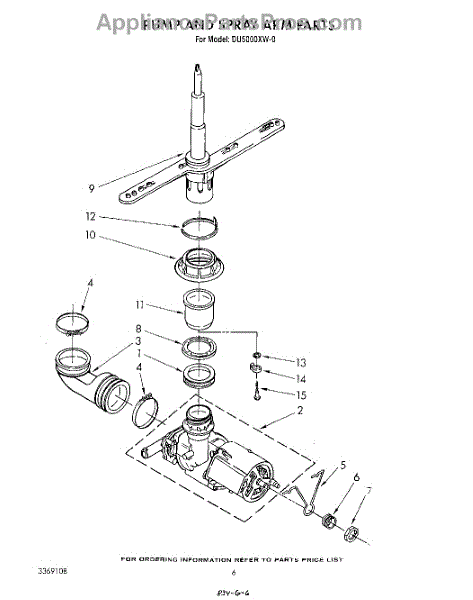 Parts for Whirlpool DU5000XW0: 05 - Pump And Spray Arm Parts