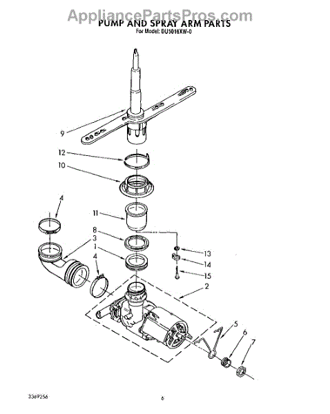 Parts for Whirlpool DU5016XW0: 04 - Pump And Spray Arm Parts