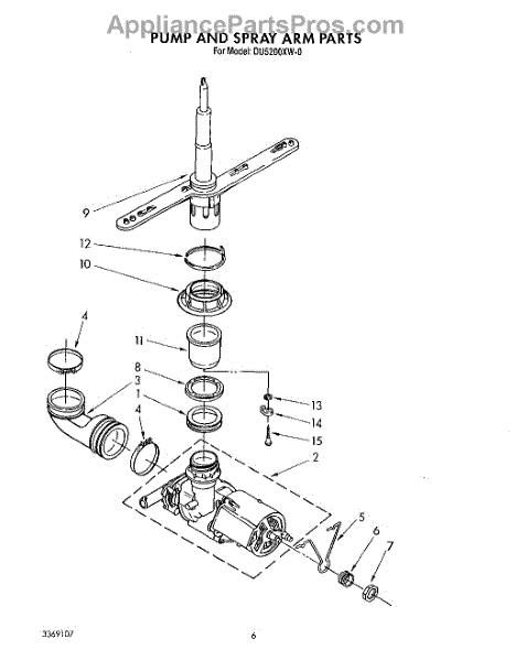 Parts for Whirlpool DU5200XW0: 04 - Pump And Spray Arm Parts