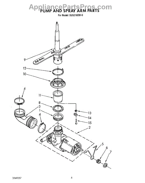 Parts for Whirlpool DU5216XW0: 04 - Pump And Spray Arm Parts