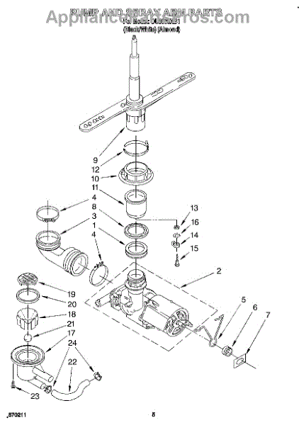 Parts for Whirlpool DU8000XB1: 04 - Pump And Spray Arm Parts