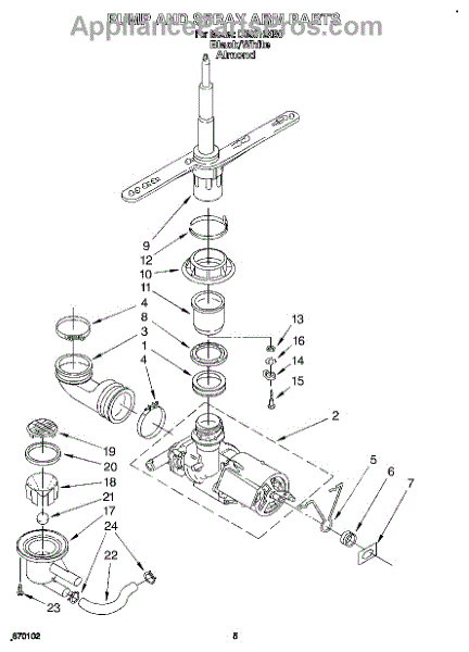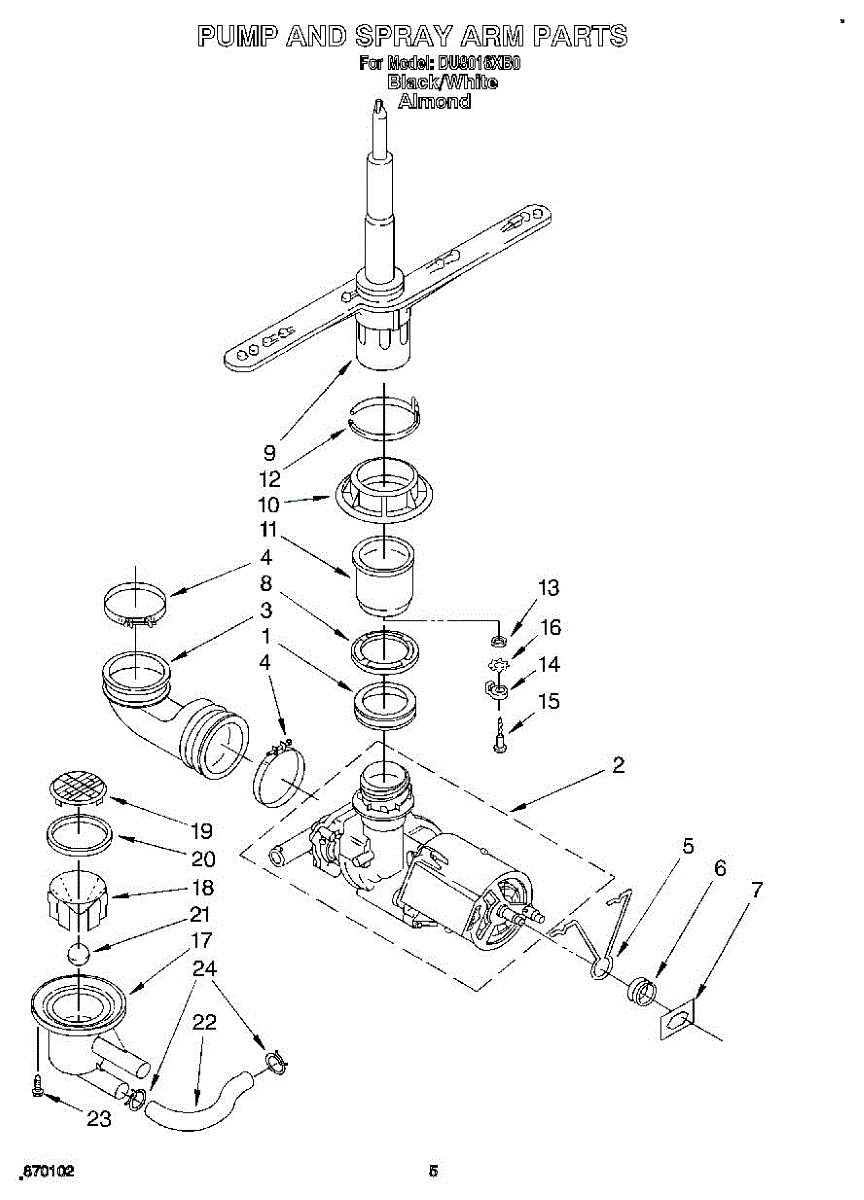 Parts for Whirlpool DU8016XB0: 04 - Pump And Spray Arm Parts