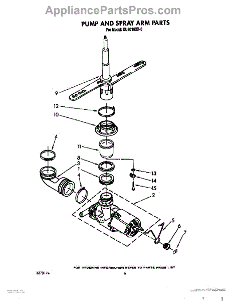 Parts for Whirlpool DU8016XX0: 05 - Pump And Spray Arm Parts