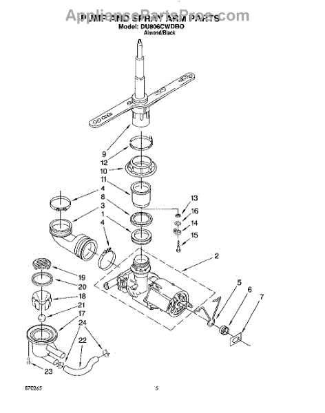 Parts for Whirlpool DU806CWDB0: 04 - Pump And Spray Arm Parts