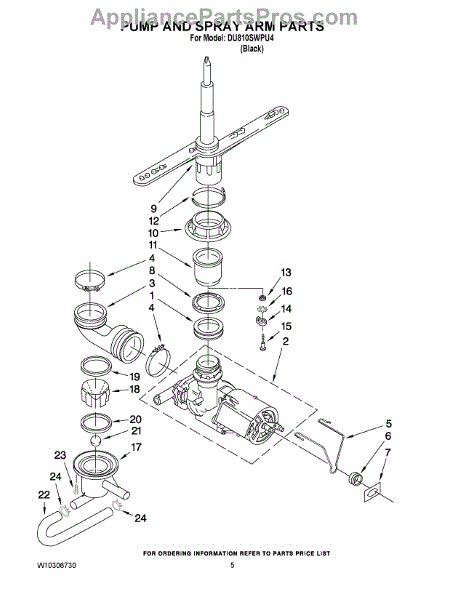 Parts for Whirlpool DU810SWPU4: 04 - Pump And Spray Arm Parts
