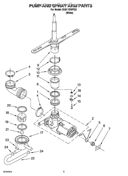 Parts for Whirlpool DU811SWPQ3: 04 - Pump And Spray Arm Parts