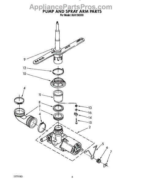 Parts for Whirlpool DU8150XX0: 05 - Pump And Spray Arm Parts