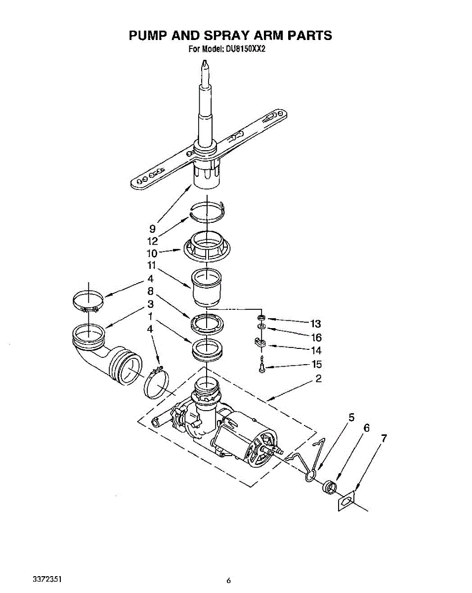 Parts for Whirlpool DU8150XX2: 05 - Pump And Spray Arm Parts